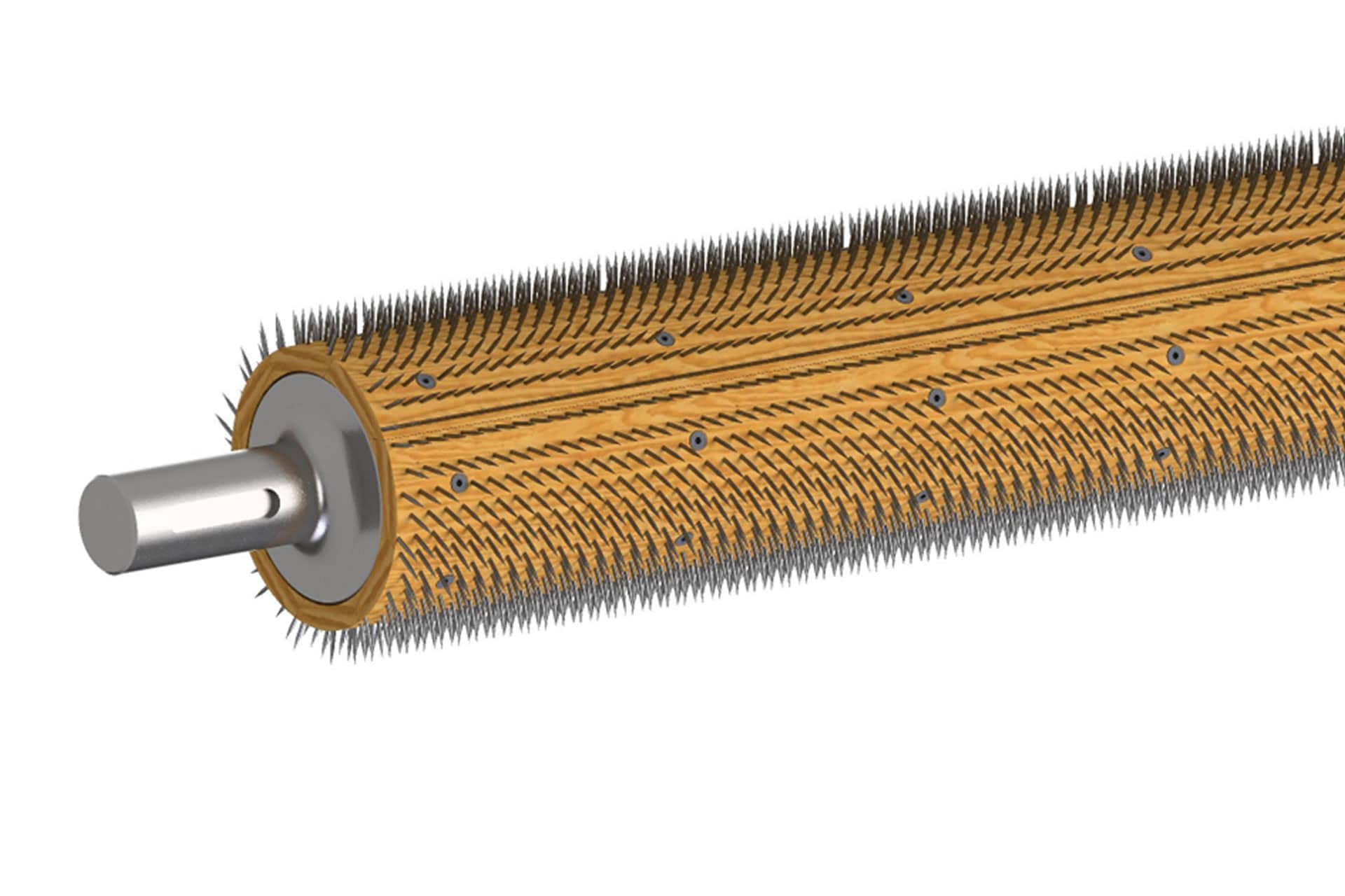 Cleaning rollers, respectively pinned rollers are used to clean the brush conveyor and remove dust or fiber residues from the velour brushes of a velour needle loom. A proper condition of the pinned roller is a precondition for a perfect product quality. ADVANCED COMPONENTS offers spare lags or complete cleaning rollers, suitable for FEHRER / AUTEFA and DILO velour needle looms.